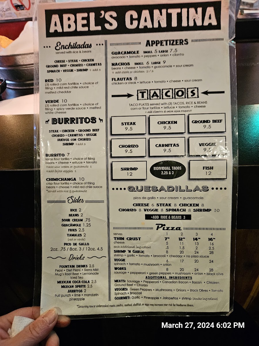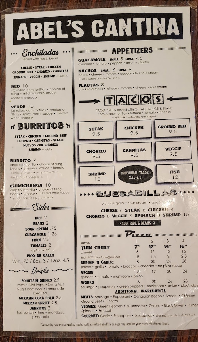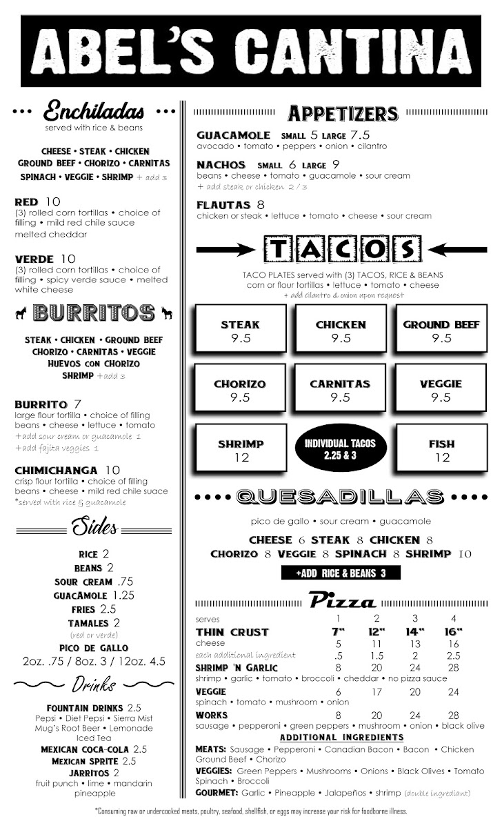 (5) Crisp corn tortillas rolled and stuffed with your choice of flling. Topped with lettuce, tomatoes, cheese and sour cream.